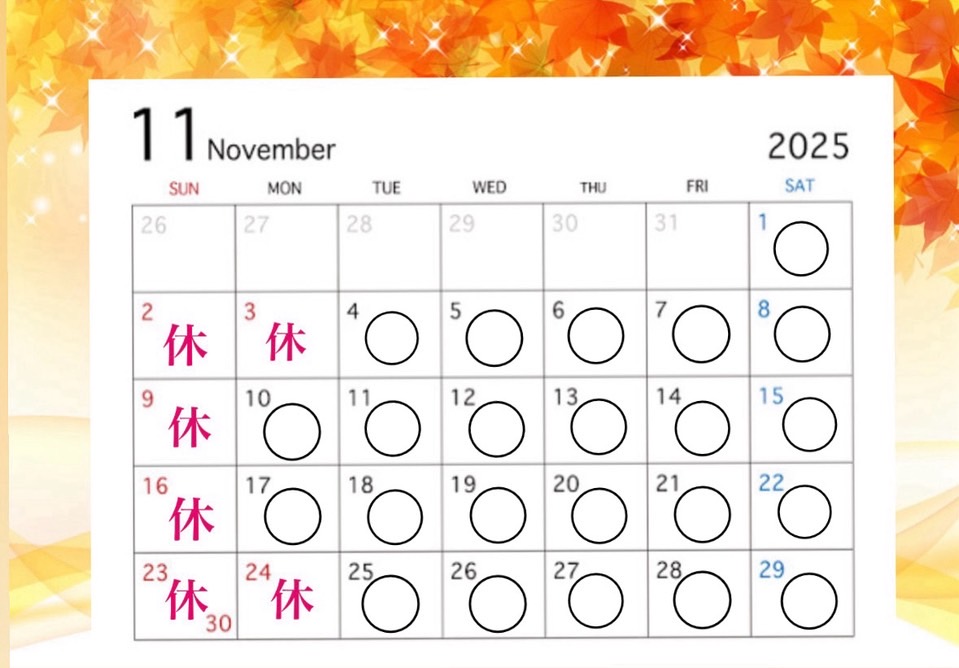 段々と冬が近づいてきましたね。祝日がありますので、診療日のご確認を宜しくお願い致します。