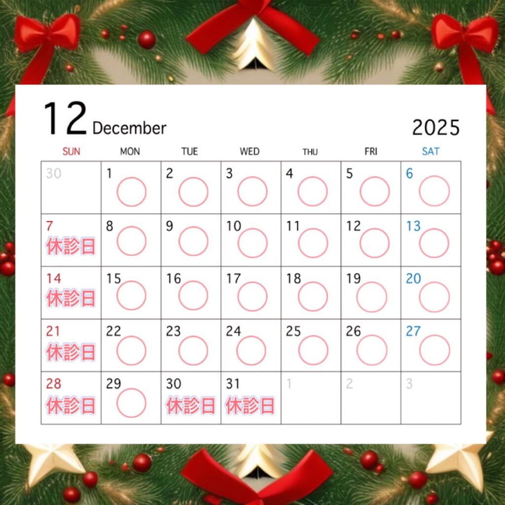 12月の診療日程です。宜しくお願い致します!