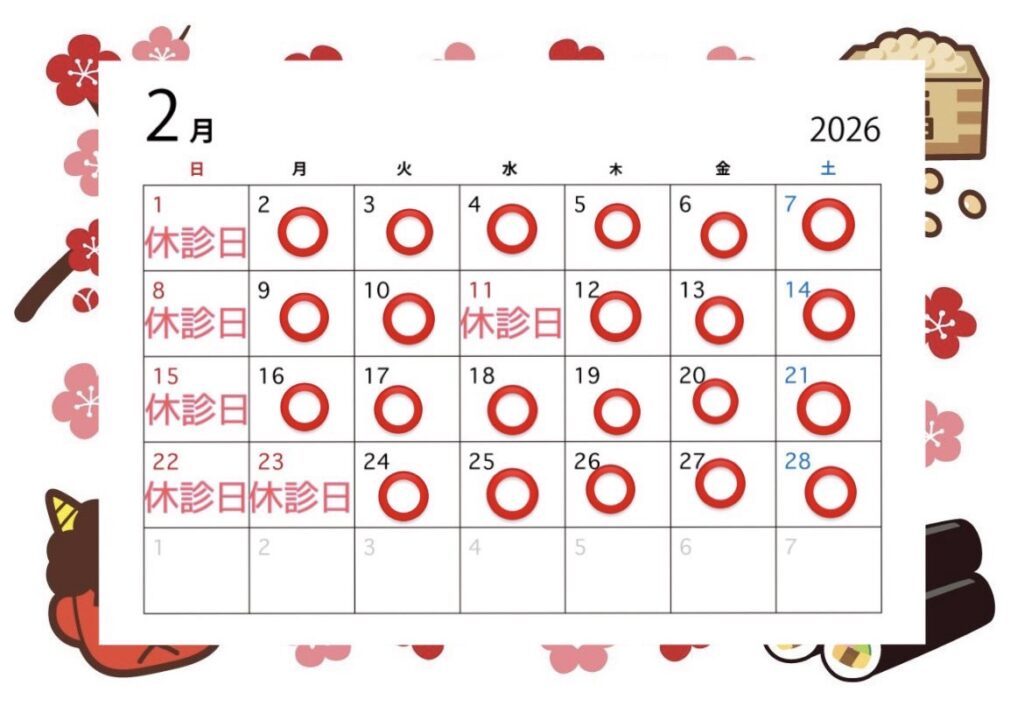 2月の診療日です。