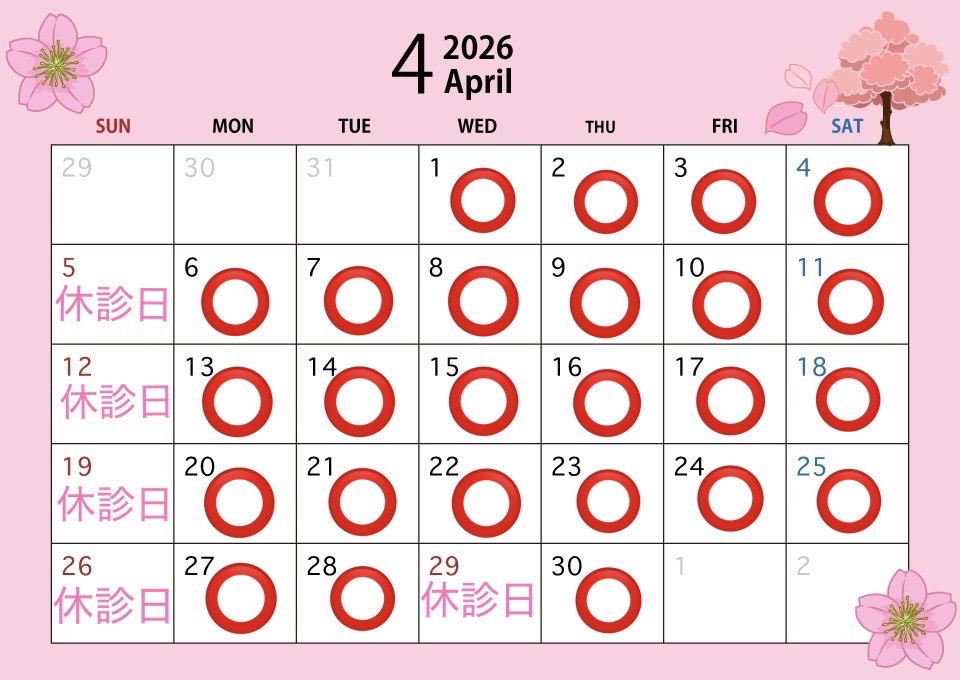 藤本歯科クリニック広島駅前院 4月診療カレンダー